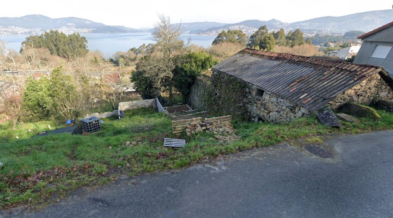 TERRENO EDIFICABLE CON GALPON DE PIEDRA CERCA DE REDONDELA CON VISTAS AL MAR