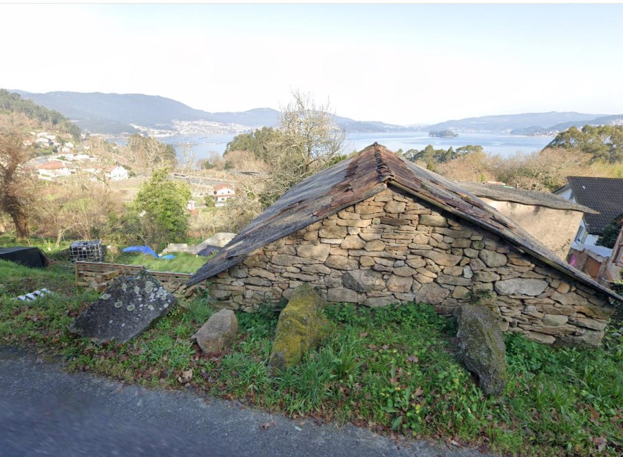 TERRENO EDIFICABLE CON GALPON DE PIEDRA CERCA DE REDONDELA CON VISTAS AL MAR